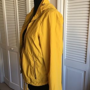 Casual mustard yellow jacket, used once so it’s in PERFECT condition. With the pictures you can see more or less the fabric and it’s really comfortable. It’s not suffocating but it could keep warm. Has pockets, gold zippers, hoodie and stretchy bands on wrist and waist. It can also fit a Medium.💛💛