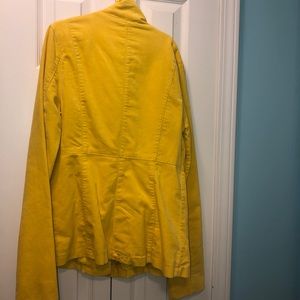 A lot brighter of a yellow in person! Like new, still has thread intact in the back and an extra button sewn on the inside!
