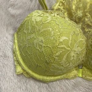 Yellow lace date racerback Victoria’s Secret pink bra 32DD