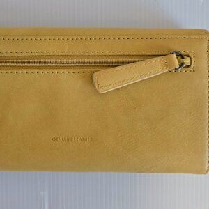 Never used Kenneth Cole wallet in yellow leather with multiple slots and zipped closure for coins.