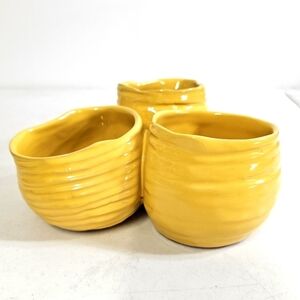 Yellow mustard 3 fused pottery Condiment serveware container, kitchen essential