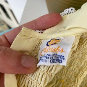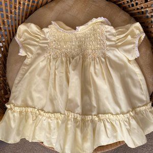Smocked Baby Dress from the 80s for infant - it says size 12 months but it runs a bit small, I would say 6-12 months is a good estimate based on my own baby. This was mine from the 1980s and was stored properly since then - great condition, I honestly think it's been worn once plus the one time I put it on my own baby for a pic. Classic pastel dress for those vintage vibes.