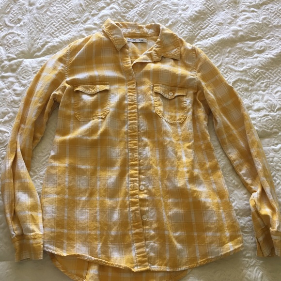 This yellow plaid button down is bright and adorable. I love pairing it with white bottoms and either some converse or heels.