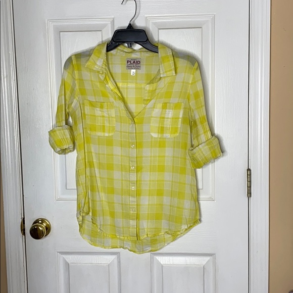 Yellow old navy plaid button down. Sleeves can be rolled down to full length.