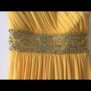 Was used as a prom dress only worn one time. It was bought with a few small snags in the fabric and 2 missing gems. Contact me for more photos on details of the dress. Has an elastic band on the back and a zip that goes midway down one side. Been kept in great condition and kept good color (no stains or marks) other than how it was previously bought.