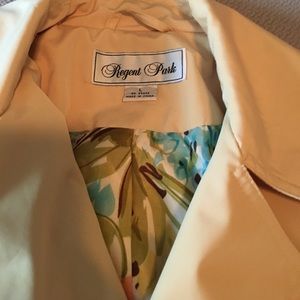Yellow rain coat! No blemishes or tears, there is a missing button on front where the belt is. Approximately 29" from shoulder to hem.