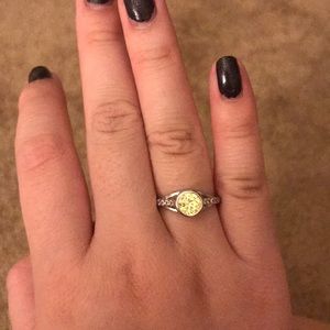 Pretty yellow stone with crystal detailing around the sides. Perfect condition.
