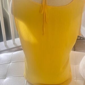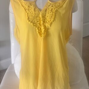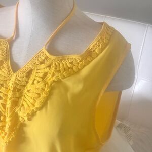 Yellow sleeveless top with lace detail; bold, breezy, and effortless