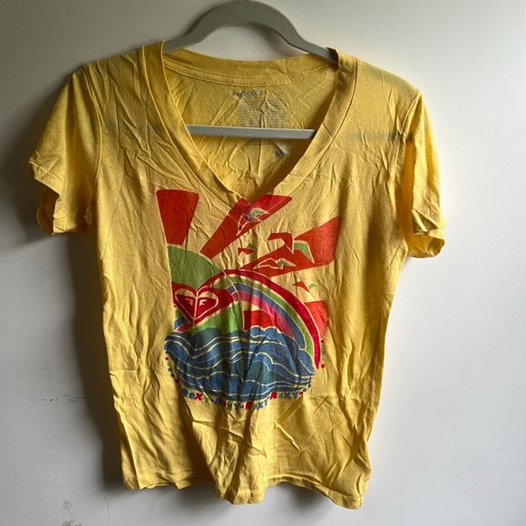 Super soft Roxy Tee. Slightly sheer, slight pilling, just wrinkled from storage.