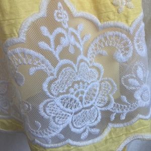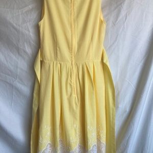 Beautiful yellow Easter dress. Fully lined with zipper back and gorgeous lace trim along the bottom. Ties the back and is classic and elegant for Sunday morning all spring and summer. Pet free smoke free.