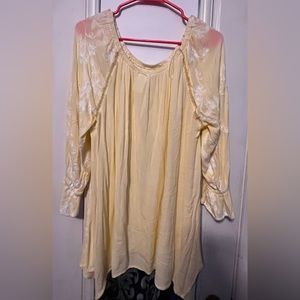 Yellow Swing top/size 1X/white floral design on front of top/high-low hem/never worn/pet free-smoke free home.