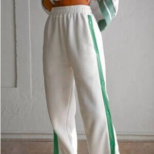 Yellow the Label Button Tearaway Fleece Sweatpants White and Green XS