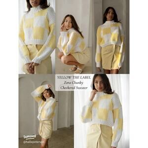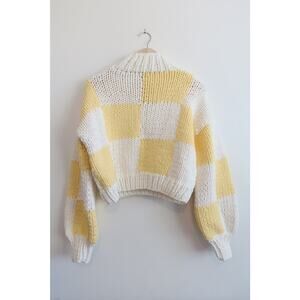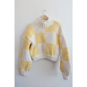 Yellow the Label Zora Chunky Knit Checkered Sweater Yellow & White Size M/L NWT!
