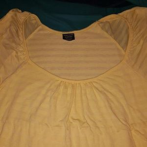 Yellow plus size top. Slight riffled detail on front.