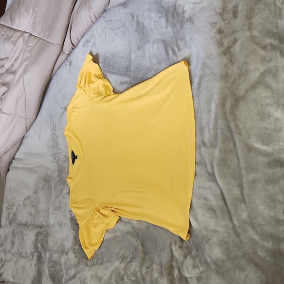 Yellow top made with a sweater material, but still light enough to wear on hot days. Detailing on the sleeves makes it flow and loose