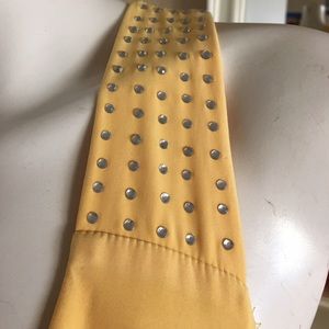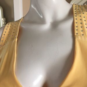Beautiful yellow top with diamond bits can be used as short dress as well. Never been worn but lost the tag in moving. It says L but can fit M