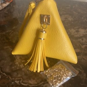Yellow triangular wristlet