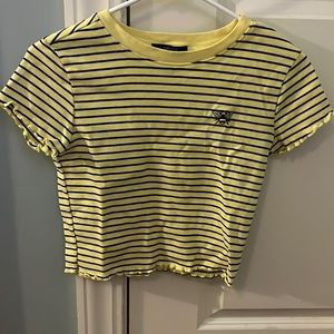 womens small, yellow, t-shirt, ruffles, stripped, bee embroidered, forever 21