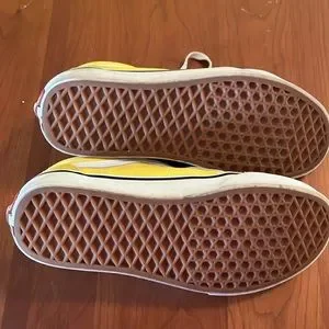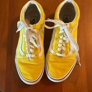 Size 8.5 womens, 7.0 men. Yellow vans, used but in good condition.