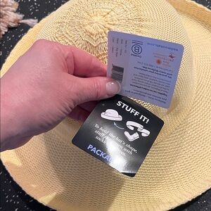 Elegant sun hat featuring a vibrant yellow trim. Ideal for sunny outings.