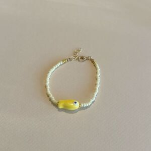 Charming bracelet with yellow beads and a fish charm. Perfect for adding a playful touch to any outfit.