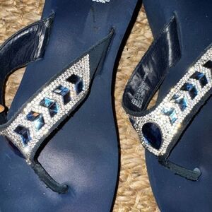 #yellowbox #blingflipflops #beachstyle #wedgeflipflops #summerfashion #resortwear #sparklysandals #navysandals #platformsandals #size95