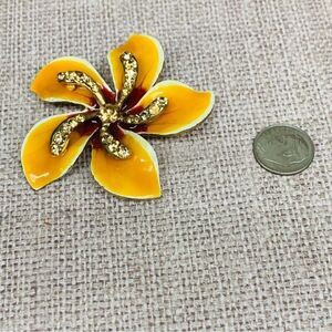 Yellow Enameled Crystal Flower Brooch