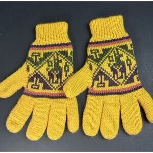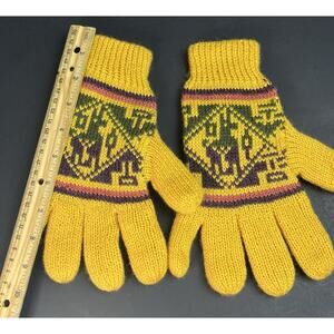 Yellow/Green/Brown Finger Unisex Peruvian Alpaca Wool Adult Gloves NEW