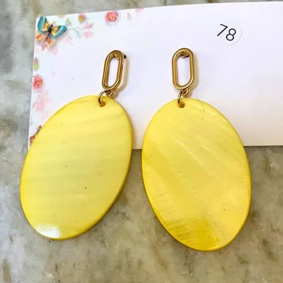 Summer fun Yellow Oval Shell Earrings. Post backing, light weight