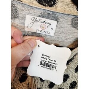 Yellowberry Women's Gray w/Black Dot Long Sleeve V-Neck Felicity Dress Size XL