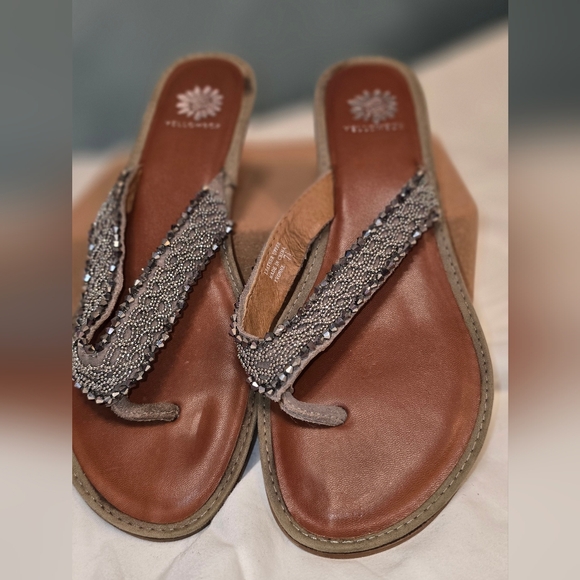 Yellowbox Beaded Gray Taupe Sandals