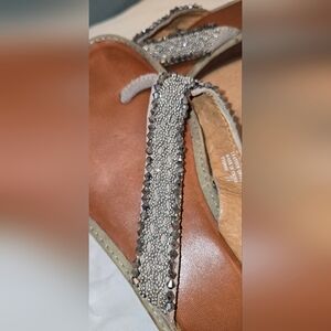 Elegant beaded sandals perfect for any occasion. Features a stylish gray/taupe design that complements any outfit.