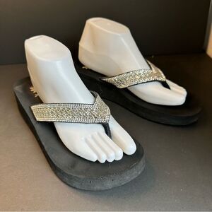 Yellowbox Black Crystal Strap Flip Flops Size 9.5