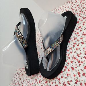 Yellowbox Gray Embellished Vegan Leather Thong Sandals Size 9