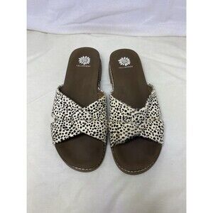 Yellowbox Kassie Cheetah SANDALS Women's 7 Slip On Cross Strap Beige Black