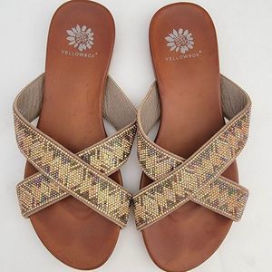 Yellowbox Womens Flat Sandals Slides Rhinestone Bling Slip On Metallic. Excellent pre-owned condition with no flaws. 3/8" block heel.