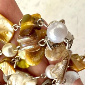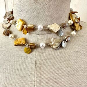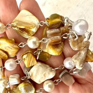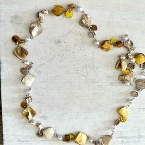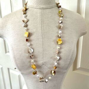 Yellow faux pearl abalone beaded long necklace