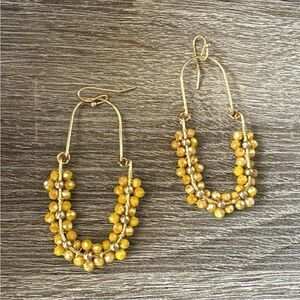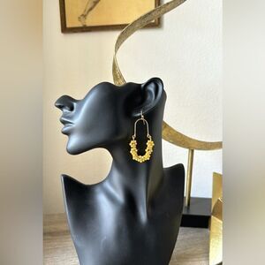 Bohemian yellow flowers drop earrings in gold hardware