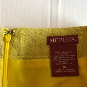 Yellow skirt by Merona. Shorter in the front than the back. Has back slit and side pockets. Zipper and clasp in the back. Super cute and perfect for summer!