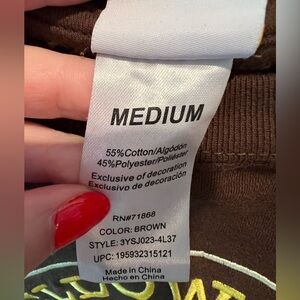 Stay cozy with the Yellowstone Dutton Ranch sweater. This brown sweatshirt is medium and features a stylish embroidered Yellowstone logo. Good preowned condition, smoke free home. Pit to pit and length measurements are shown. Thanks for looking!
