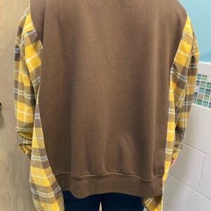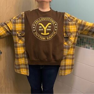 Yellowstone Dutton Ranch Pocket Flannel High Low Sweatshirt Rework