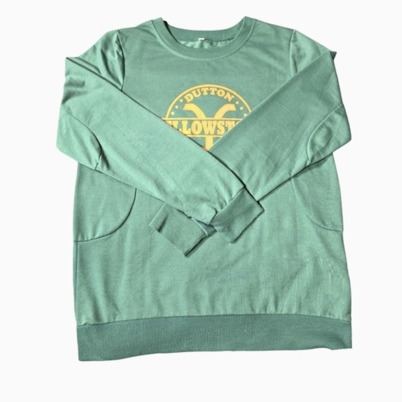 Perfect sweater for those Yellowstone Series Show Fans! Soft, warm and cozy. Sage green. Great condition. Size tag has been removed but believe it is a Medium.