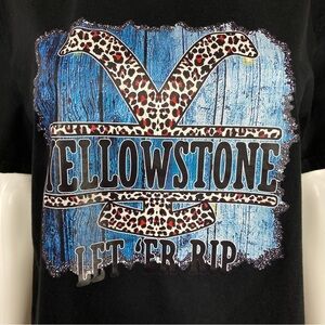 Yellowstone Let ‘er Rip Barn Wood & Animal Print Design Black Tee
