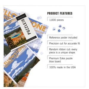 Explore the beauty of Yellowstone with this vibrant puzzle from . Featuring a stunning depiction of the Grand Prismatic Spring, this 1000-piece puzzle is perfect for nature enthusiasts. The colorful design includes shades of blue, green, and brown, bringing the park's iconic landscape to life.