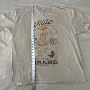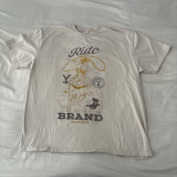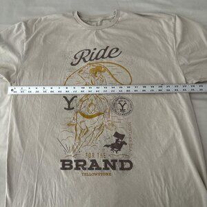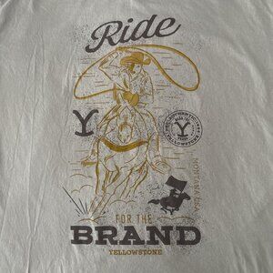Yellowstone Ride for the Brand Off White and Yellow T-shirt. Yellowstone tag. Size XXL. Measurements in photos. #yellowstone #western #horses #rodeo
