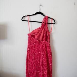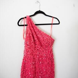 Dazzling and bright, this one-shoulder fitted prom dress shines with sequins. It features a side slit to allow you to walk easily and show your slender legs with the move.