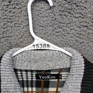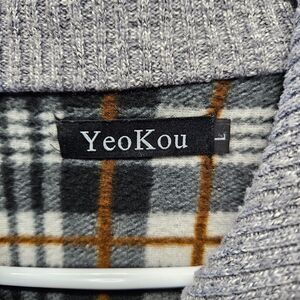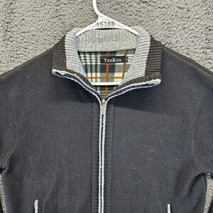 YeoKou Sweater Jacket Men Large Black Cashmere Wool Knit Full Zip Fleece Lined