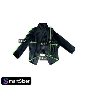 The fold jacket is made of 100% microfiber gabardine, a material that is low maintenance and travels well. This elegant jacket has a soft folded lapel with no closure.