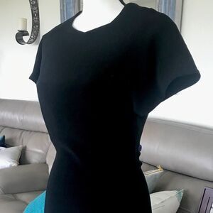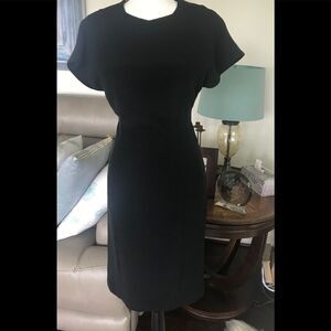 Used in excellent condition classic black fitted dress. Fitted throughout with a low V back and cutouts for a sexy classy look. Hidden back zipper closure. Carried at Bergdorf Goodman at the New York Plaza.