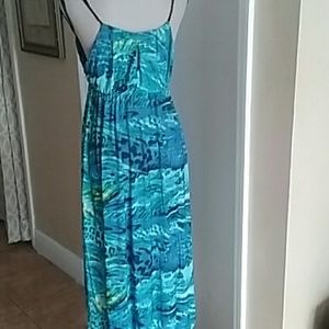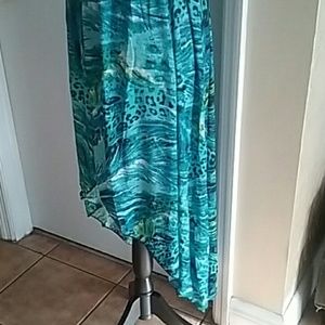 NWT beautiful and comfortable summer dress with elastic waist high-low style, with wooden beads on front tie. Approx measurements: length from chest to bottom 27" / back 43" / chest 16" / elastic waist stretches to approx 18" **runs small**